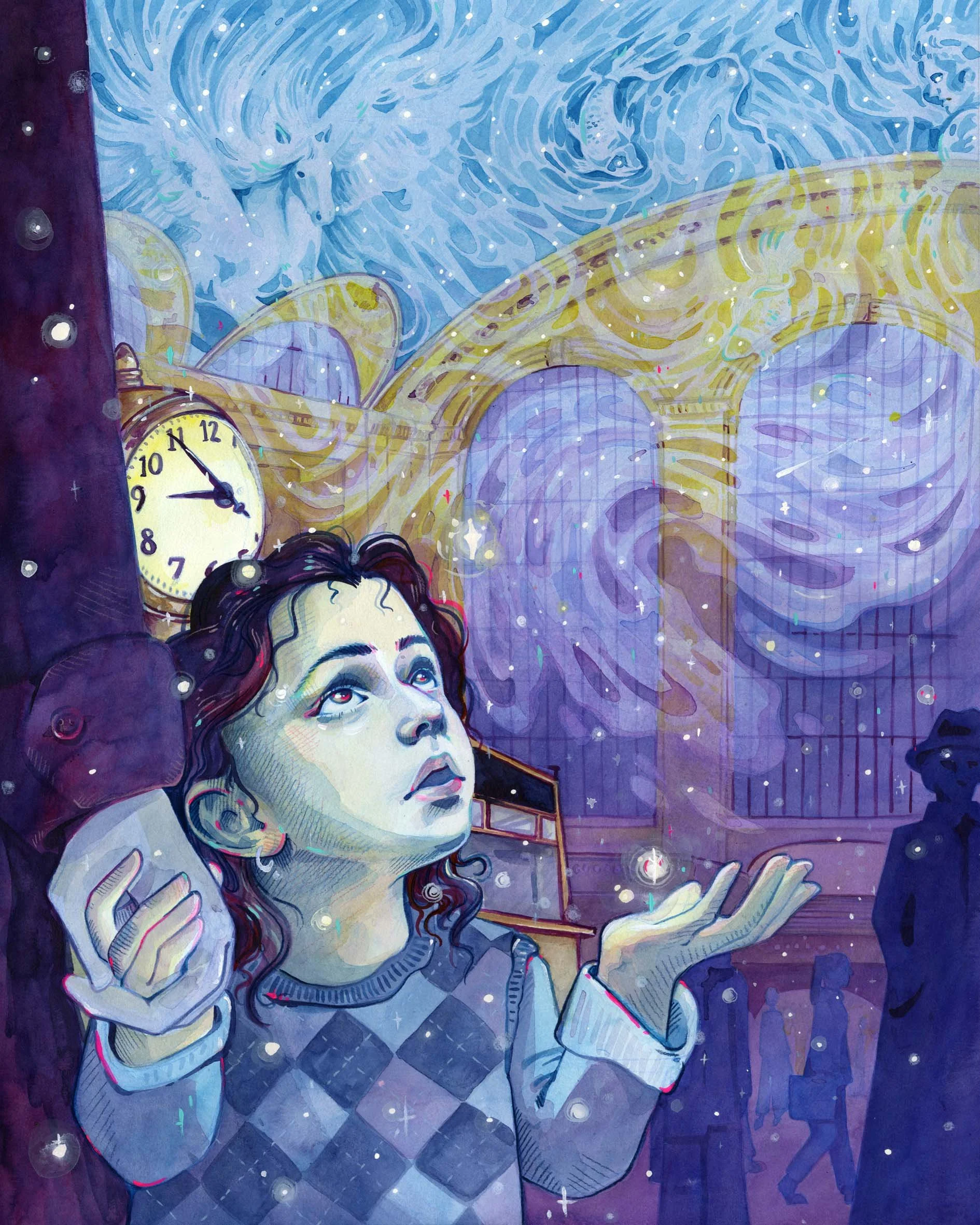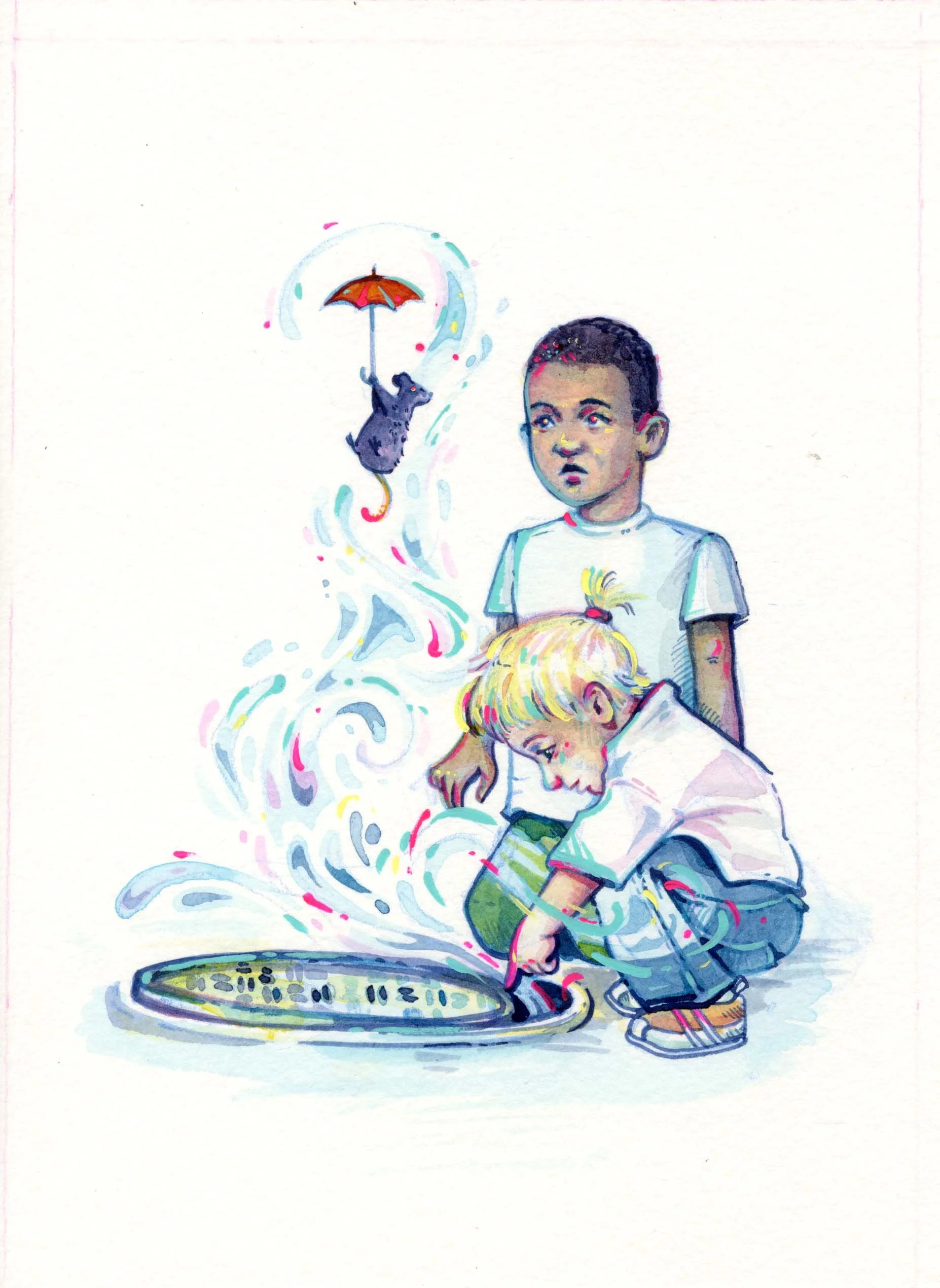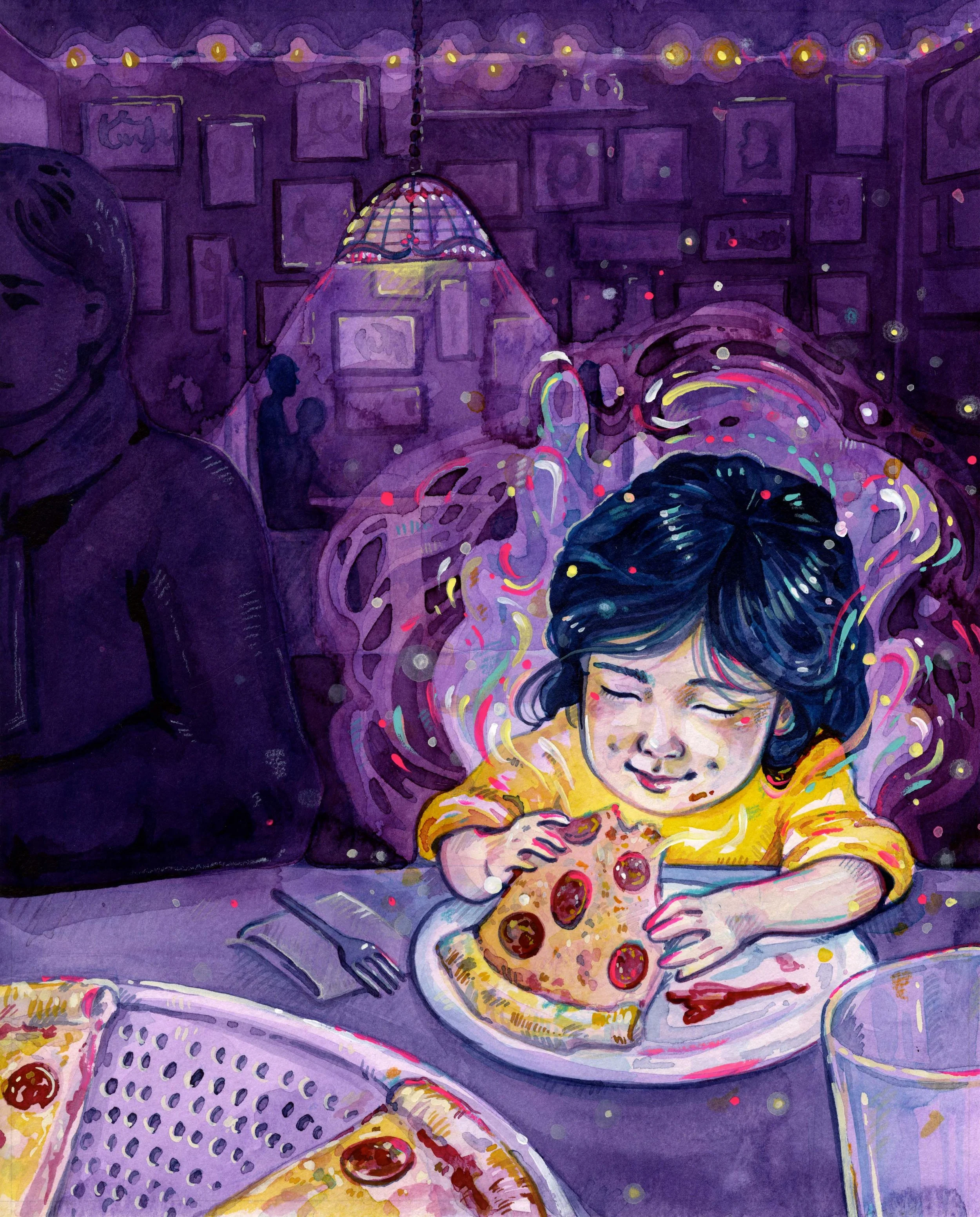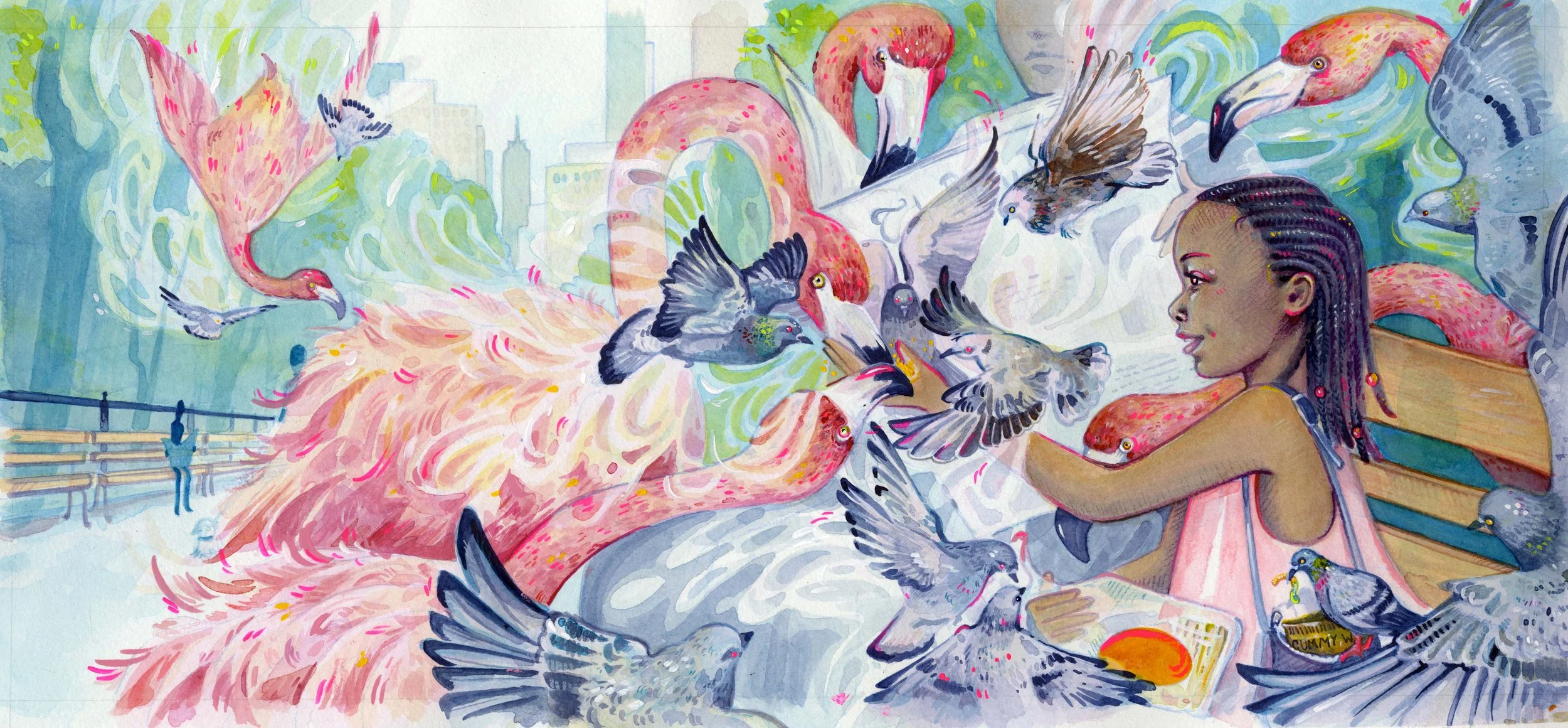 Growing up, I would often visit New York City. Some of my fondest childhood memories came from those trips. For my thesis work, I wanted to embrace those memories and illustrate New York City from the perspective of a child’s imagination. All my pieces are painted using ink, gouache and hints of colored pencil.